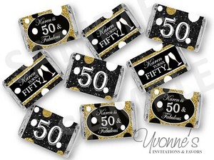 40th, 50th, 60th Birthday Mini Candy Bar Wrappers-Black and Gold Confetti- 48 ct