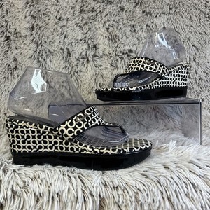 Brighton schwarze Leder-Pantoletten offene Zehenpartie geprägtes Medaillon Designer Slipper Gr. 6M CHF 19,89