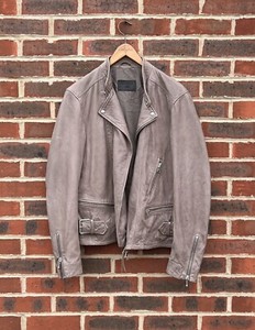 AllSaints Herren SURVEY Leder Blazer Jacke MEDIUM Grau All Saints Biker Biker