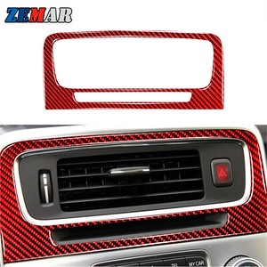 Red Carbon Fiber Central Air Vent Outlet Frame Trim For Volvo V60 S60 2010-2018