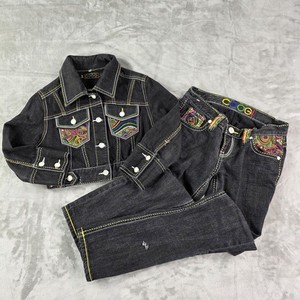 Coogi Jeansjacke Jeans Set Damen Small W 3/4 L 33,5 schwarz bestickt Y2K