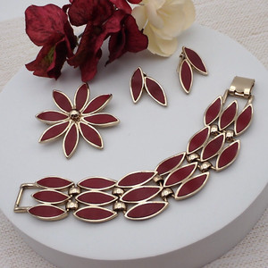 Vintage 1950er Sugarcoat rosa hellbraun Ahornblatt Halskette Armband goldfarben Ohrring Set CHF 39,85