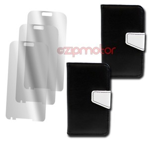 2X BRIEFTASCHE HÜLLE + DISPLAYSCHUTZFOLIE STÄNDER PU LEDER SCHWARZ GALAXY SIV S4 I9500
