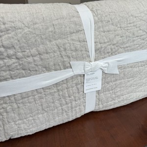 POTTERY BARN BELGISCHER FLACHS LEINEN FLORAL STITCH QUILT, KING/CAL KING ~ FLACHS