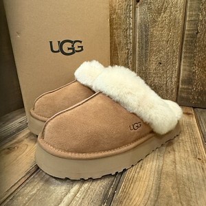 UGG DISQUETTE PLATEAU SLIPPER DAMEN US 10 VELOURSLEDER WOLLE SLIDE SANDALE KASTANIE