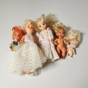 5 Vintage kleine Plastikpuppen 70er - 90er verschiedene Hasbro Mattel Tyco Honk Kong usw.