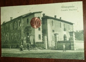 Cartolina d'epoca paesagg Italia Lombardia Milano Abbiategrasso Castello Visc